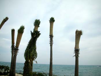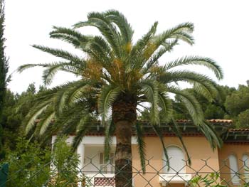 Palmiers emaillottés, protégés pour des travaux Phoenix canariensis, Antibes